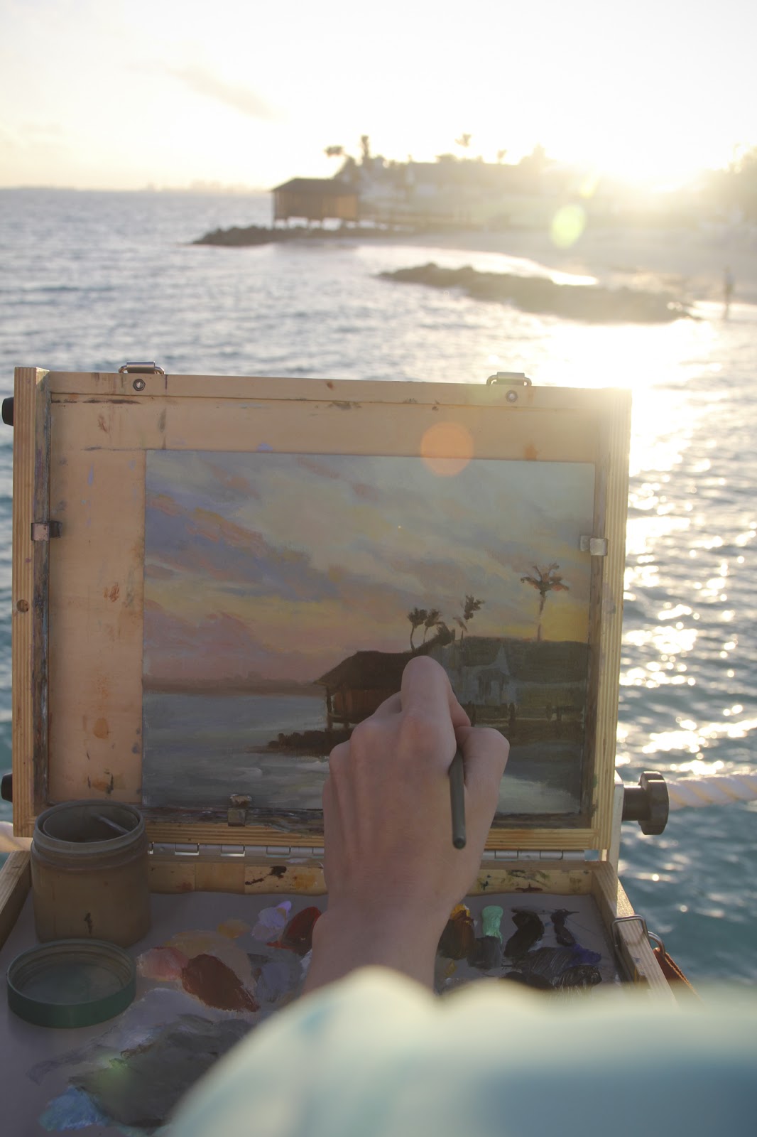 Last week my in-laws treated Steve and me to an all-inclusive beach vacation with them in the Bahamas. We stayed at the Sandals Royal Bahamian in Nassau, which includes lots of water sports, restaurants, drinks all day (not that I took advantage of that!), and even an off-shore private island. Of course, I couldn't stand the thought of spending five days without painting, so I brought my pochade box and supplies along with me. I managed to do a little bit of plein air painting almost every day we were there. There was something incredibly freeing about standing there in a bathing suit, barefoot in the sand, doing what I love the most. :-)